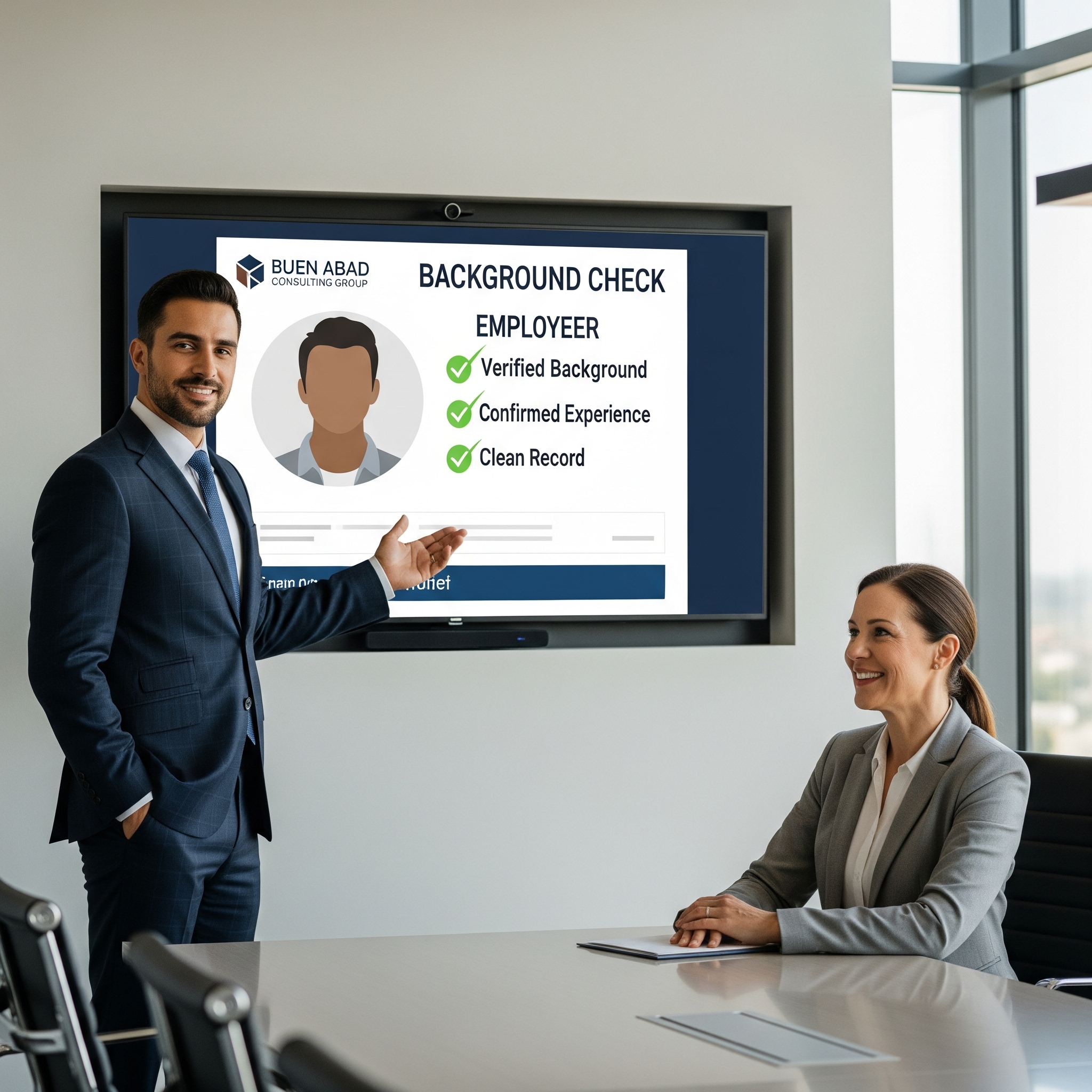 Contrataciones Confiables y de Calidad: Buen Abad Consulting Group verifica la autenticidad de la información proporcionada por los candidatos, incluyendo datos personales, historial laboral, referencias y antecedentes legales. Esto asegura que cada nuevo integrante sea genuino, capaz y compatible con su empresa, elevando la calidad de sus contrataciones.